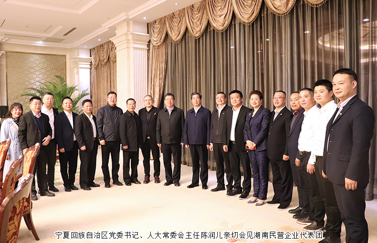 為進一步促進湘寧兩地經(jīng)貿(mào)交流合作,推動雙方企業(yè)精準對接,實現(xiàn)優(yōu)勢互補,2020年11月16-19日,湖南省政協(xié)副主席、省工商聯(lián)主席張健,長沙市政協(xié)副主席、市工商聯(lián)主席彭繼球攜湖南民營企業(yè)代表團赴寧夏考察調(diào)研。寧夏回族自治區(qū)黨委書記、人大常委會主任陳潤兒親切會見了代表團一行。寧夏回族自治區(qū)黨委常委、秘書長趙永清,自治區(qū)黨委常委、統(tǒng)戰(zhàn)部部長白尚成,自治區(qū)政協(xié)副主席王紫云,自治區(qū)商務(wù)廳廳長徐曉平,自治區(qū)黨委統(tǒng)戰(zhàn)部副部長、工商聯(lián)黨組書記魏莉,自治區(qū)工商聯(lián)副主席康俊杰;銀川市委常委,市人民政府副市長李鴻儒,銀川市政府副市長韓江龍;吳忠市政協(xié)主席孫瑛,市人民政府副市長戴培吉等領(lǐng)導(dǎo)陪同調(diào)研。湖南省工商聯(lián)副主席、步步高集團總裁陳志強,湖南省工商聯(lián)(總商會)副會長、綠之韻集團董事長胡國安等企業(yè)家、商會會長參加調(diào)研。