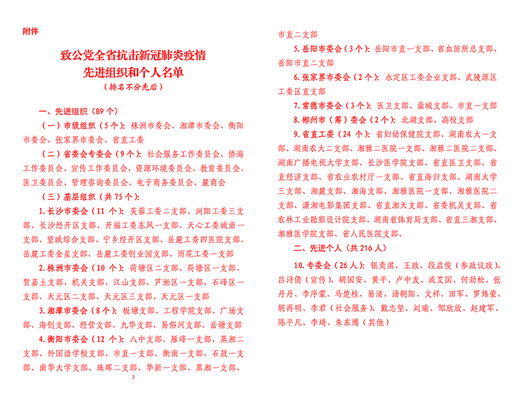 致力為公,是每一個(gè)致公黨員心中永遠(yuǎn)不變的目標(biāo)。2020年初,在重大疫情面前,致公黨長(zhǎng)沙市委各級(jí)組織和廣大黨員紛紛在各自崗位上投入到抗擊疫情的第一線,用實(shí)際行動(dòng),為打贏疫情防控阻擊戰(zhàn),貢獻(xiàn)自己的智慧和力量。湖南省政協(xié)委員、致公黨員、綠之韻集團(tuán)董事長(zhǎng)胡國(guó)安帶領(lǐng)集團(tuán)公司黨委、工會(huì)、全國(guó)分公司各下屬機(jī)構(gòu)上下聯(lián)動(dòng),通過多種方式積極援助湖北湖南抗擊疫情,累計(jì)捐贈(zèng)款物近200萬元,以實(shí)際行動(dòng)和滿腔愛心踐行“致力為公、僑海報(bào)國(guó)”的初心與使命。先后收到了湖南省委省政府、省委統(tǒng)戰(zhàn)部、致公黨湖南省委、省工商聯(lián)、省慈善總會(huì)、長(zhǎng)沙市委市政府、益陽市委市政府、湘潭市委市政府發(fā)來的感謝信。綠之韻集團(tuán)被全國(guó)工商聯(lián)評(píng)為“抗擊新冠肺炎疫情先進(jìn)民營(yíng)企業(yè)”,湖南省綠之韻公益基金會(huì)被湖南省工商聯(lián)、長(zhǎng)沙市工商聯(lián)授予“抗擊新冠肺炎疫情先進(jìn)單位”榮譽(yù)稱號(hào),胡國(guó)安董事長(zhǎng)獲評(píng)“湖南省政協(xié)扶貧行動(dòng)先進(jìn)個(gè)人”“致公黨全省抗擊新冠肺炎疫情先進(jìn)個(gè)人”等稱號(hào)。