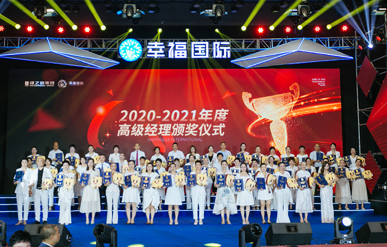 人生中每個(gè)腳印都是相連的。沒有白費(fèi)的努力,也沒有碰巧的成功,一切機(jī)緣巧合其實(shí)都是水到渠成。在現(xiàn)場千余名綠之韻幸福國際家人們的見證下,大會(huì)舉行了盛大的頒獎(jiǎng)儀式。200余名“2020-2021年度高級經(jīng)理”身著盛裝,在星光閃爍中走上舞臺(tái),共享榮耀時(shí)刻。獲獎(jiǎng)代表邱龍、左左伉儷分享獲獎(jiǎng)感言。
