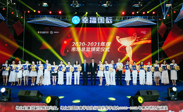 他們,是我們口中的60后,70后;他們,經(jīng)歷過激情燃燒的歲月;他們,成長在信仰純粹的年代;他們,為國家的高速發(fā)展奉獻(xiàn)青春。進(jìn)入人生的后半段,他們遇見了綠之韻幸福國際,沉寂已久的激情被重新點(diǎn)燃,他們重整奮斗腳步,用信念創(chuàng)造無限可能,用行動(dòng)書寫人生第二春。綠之韻集團(tuán)黨委書記劉云,綠之韻國際商學(xué)院常務(wù)副院長陳敏為“2020-2021年度市場總監(jiān)”頒獎(jiǎng)。