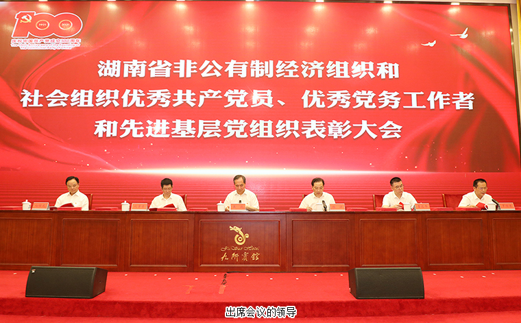 中共湖南省委組織部副部長陳瀟主持會議。大會伊始,全體起立,共唱國歌。中共湖南省委兩新工委專職副書記羅纘吉宣讀表彰文件。大會表彰一批湖南省非公有制經(jīng)濟(jì)組織和社會組織優(yōu)秀共產(chǎn)黨員、優(yōu)秀黨務(wù)工作者和先進(jìn)基層黨組織。與會領(lǐng)導(dǎo)為獲獎代表頒發(fā)獎牌和榮譽(yù)證書。綠之韻集團(tuán)黨委書記劉云榮獲“優(yōu)秀黨務(wù)工作者”榮譽(yù)。