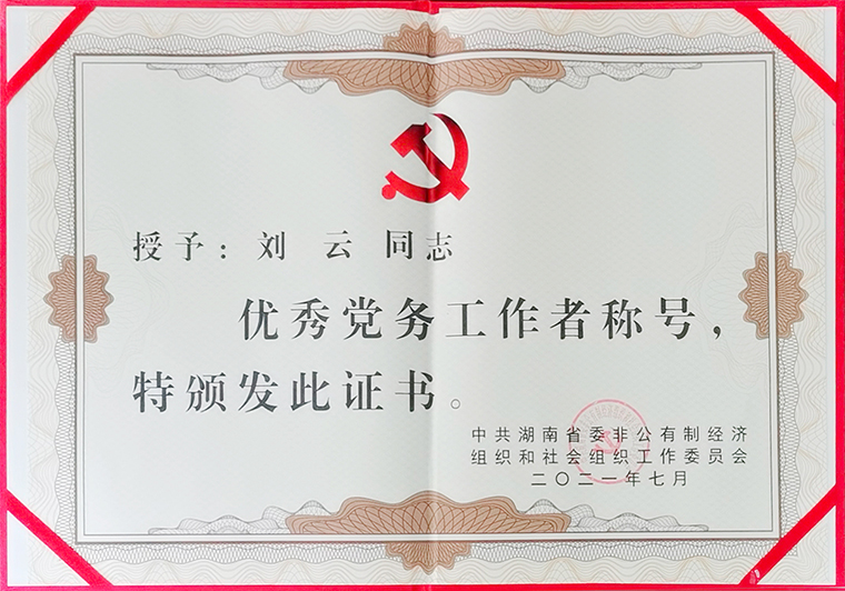 湖南省兩新領(lǐng)域“兩優(yōu)一先”表彰大會召開,綠之韻集團(tuán)黨委書記劉云榮獲湖南省“優(yōu)秀黨務(wù)工作者”榮譽(yù)