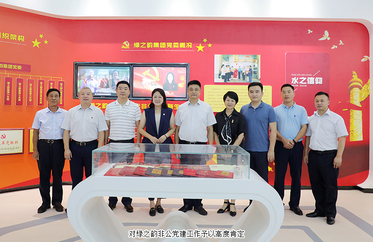 調(diào)研組一行先后參觀了綠之韻國際會(huì)議中心多功能形象展示廳和黨建文化教育基地,并對綠之韻非公黨建工作予以高度肯定。
