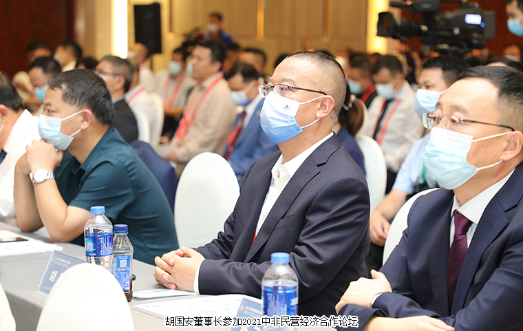 27日下午,胡國安董事長受邀參加2021中非民營經(jīng)濟(jì)合作論壇。全國政協(xié)副主席、中華全國工商業(yè)聯(lián)合會主席高云龍,塞內(nèi)加爾經(jīng)濟(jì)、社會和環(huán)境理事會 第一副主席巴伊迪·艾格尼,湖南省委副書記、省長毛偉明,全國工商聯(lián)黨組成員、副主席邱小平,外交部非洲司司長吳鵬,商務(wù)部西亞非洲司一級巡視員謝亞靜,中非民間商會會長汪力成,湖南省委常委、統(tǒng)戰(zhàn)部部長黃蘭香,湖南省政協(xié)副主席、 省工商聯(lián)主席張健等領(lǐng)導(dǎo)嘉賓出席活動。