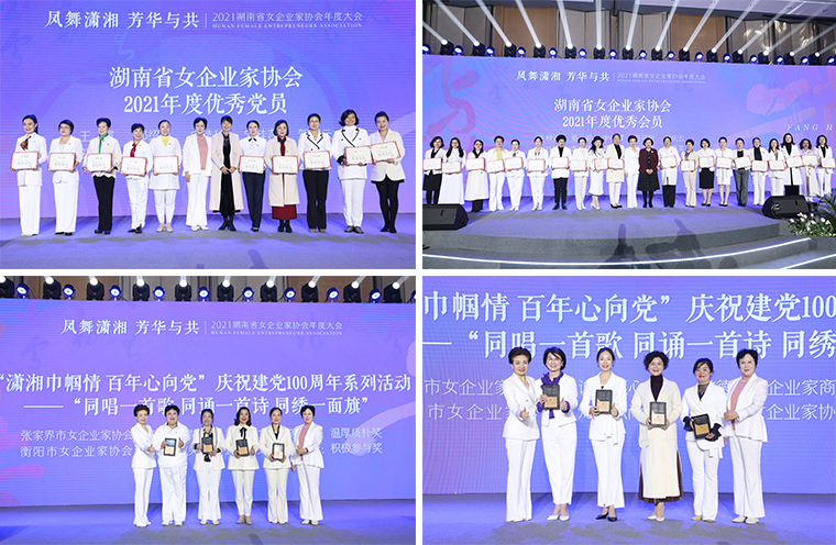 2021年,在第六屆理事會(huì)的領(lǐng)導(dǎo)下,在廣大會(huì)員的大力支持和積極配合下,協(xié)會(huì)認(rèn)真踐行服務(wù)宗旨,引領(lǐng)瀟湘女企業(yè)家聽(tīng)黨話跟黨走,為經(jīng)濟(jì)社會(huì)發(fā)展貢獻(xiàn)巾幗力量。在建黨100周年來(lái)臨之際,協(xié)會(huì)組織開(kāi)展了一系列主題鮮明、參與廣泛的協(xié)會(huì)活動(dòng),展示了廣大瀟湘女企業(yè)家積極向上的良好風(fēng)貌。其中,涌現(xiàn)出了一批履職盡責(zé)、積極主動(dòng)、無(wú)私奉獻(xiàn)的優(yōu)秀代表。大會(huì)集中頒發(fā)了“優(yōu)秀黨員”“優(yōu)秀會(huì)員”“優(yōu)秀團(tuán)體會(huì)員”“優(yōu)秀協(xié)會(huì)工作者”等獎(jiǎng)項(xiàng)。勞嘉總裁被授予“瀟湘巾幗情 百年心向黨”慶祝建黨100周年系列活動(dòng)——紅色之旅“兢兢業(yè)業(yè)”獎(jiǎng)。