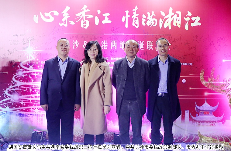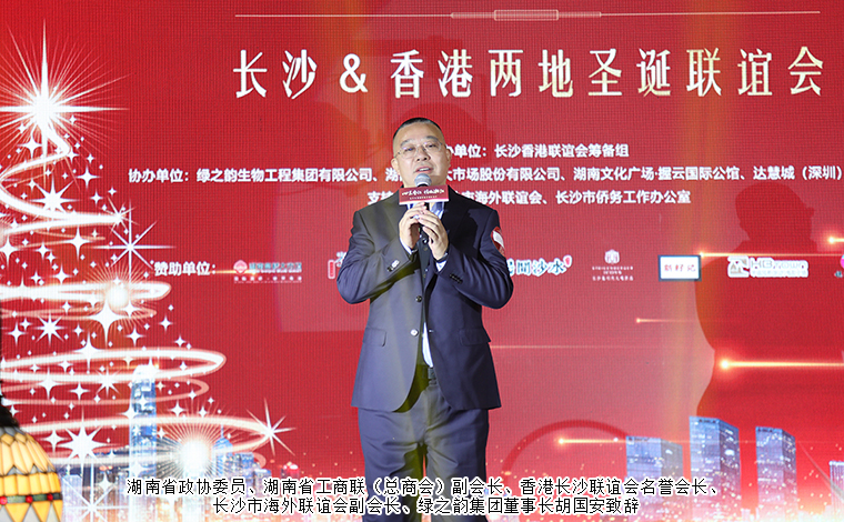 2021年12月25日,由長沙香港聯(lián)誼會籌備組主辦的“心系香江 情滿湘江”長沙&香港兩地圣誕聯(lián)誼會在長沙舉行。中共湖南省委統(tǒng)戰(zhàn)部二級巡視員劉麗輝、港澳臺處副處長曾海峰;湖南省港澳辦港澳處處長黎沖、三級主任科員李文明;湖南省委宣傳部對外推廣處副處長王文彬;中共長沙市委統(tǒng)戰(zhàn)部副部長、市僑辦主任饒福明,市委統(tǒng)戰(zhàn)部港澳臺處四級調(diào)研員李燁、港澳臺處處長趙敏,港澳臺處二級主任科員王華銘;長沙市港澳辦港澳處處長吳沙等領(lǐng)導(dǎo)參加活動。湖南省政協(xié)委員、湖南省工商聯(lián)(總商會)副會長、香港長沙聯(lián)誼會名譽會長、長沙市海外聯(lián)誼會副會長、綠之韻集團董事長胡國安受邀參加活動。