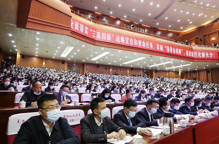 長沙市人大常委會黨組書記、主任謝衛(wèi)東主持會議并宣布大會開幕。會場全體起立,高唱國歌。在熱烈的掌聲中,長沙市人民政府市長鄭建新作政府工作報告。報告共分四部分:一是本屆政府及2021年工作回顧;二是未來五年的發(fā)展目標(biāo)和重點任務(wù);三是2022年工作重點;四是切實加強(qiáng)政府自身建設(shè)。鄭建新說,2021年是黨和國家歷史上具有里程碑意義的一年,也是本屆政府的收官之年。我們深入貫徹習(xí)近平總書記對湖南重要講話重要指示批示精神,全面落實“三高四新”戰(zhàn)略定位和使命任務(wù),融入新發(fā)展格局,推進(jìn)高質(zhì)量發(fā)展,實現(xiàn)“十四五”良好開局。特別是省第十二次黨代會明確實施強(qiáng)省會戰(zhàn)略,為長沙發(fā)展注入強(qiáng)大動力、賦予新的使命。全市上下要深入落實強(qiáng)省會戰(zhàn)略,以實干搶抓機(jī)遇,用擔(dān)當(dāng)迎接挑戰(zhàn),進(jìn)一步強(qiáng)化省會意識、彰顯省會作為,奮力在全國爭先進(jìn)、在區(qū)域作示范、在全省當(dāng)標(biāo)桿。