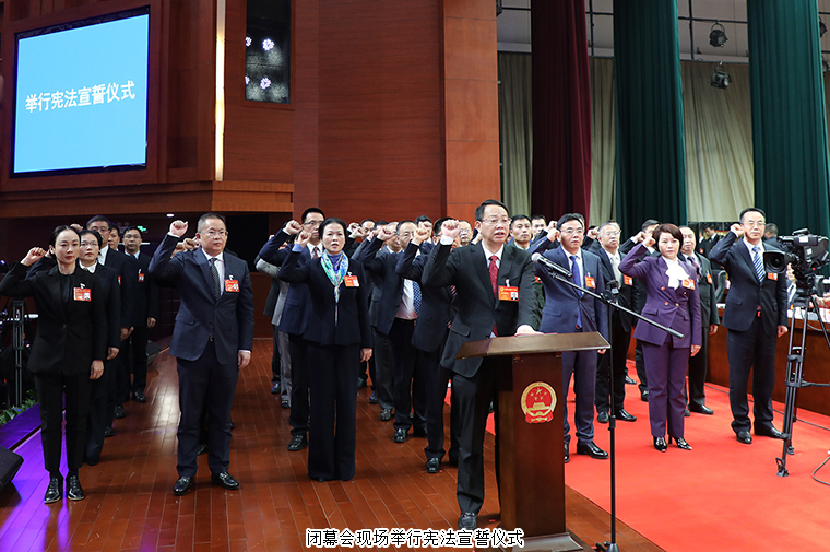 在圓滿完成各項議程后,長沙市十六屆人大一次會議舉行閉幕會。大會以電子表決的方式,表決通過了關(guān)于設(shè)立長沙市第十六屆人民代表大會專門委員會的決定,表決通過了長沙市第十六屆人民代表大會各專門委員會主任委員、副主任委員、委員名單,表決通過了大會各項決議。其中,胡國安代表當(dāng)選十六屆長沙市人大農(nóng)業(yè)與農(nóng)村委員會委員。隨后,閉幕會舉行莊嚴(yán)的憲法宣誓儀式。