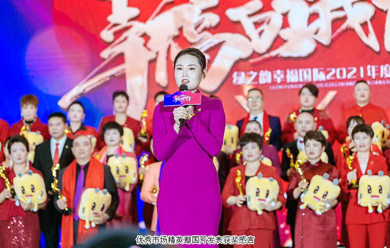 他們,從不缺席每一次成長(zhǎng),從不放棄每一份希望。他們從追逐光,到成為光,用破繭成蝶的蛻變,為奮斗注入新的內(nèi)涵。綠之韻國(guó)際商學(xué)院執(zhí)行院長(zhǎng)黎芋成、綠之韻集團(tuán)市場(chǎng)運(yùn)營(yíng)中心區(qū)域業(yè)務(wù)總監(jiān)譚紅為“綠之韻幸福國(guó)際2021年度最具成長(zhǎng)獎(jiǎng)”獲得者頒獎(jiǎng),并致以祝賀。優(yōu)秀市場(chǎng)精英鄢國(guó)芳發(fā)表獲獎(jiǎng)感言。