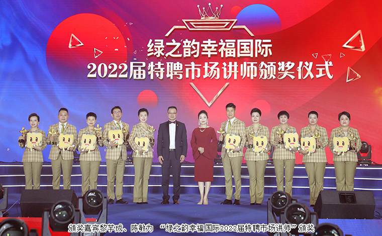 他們,肩負(fù)傳道、授業(yè)、解惑的講師使命,向外界推開綠之韻幸福國(guó)際的文化窗口,為綠之韻的事業(yè)版圖立下了不朽的功勛。因?yàn)樗麄兪菐熣?,德之高,能之?qiáng),是光芒,他們是行者,志之堅(jiān),行之正,是榜樣。綠之韻國(guó)際商學(xué)院執(zhí)行院長(zhǎng)黎芋成、綠之韻國(guó)際商學(xué)院常務(wù)副院長(zhǎng)陳敏為“綠之韻幸福國(guó)際2022屆特聘市場(chǎng)講師”頒獎(jiǎng),并致以祝賀。獲獎(jiǎng)代表汪春金發(fā)表獲獎(jiǎng)感言。