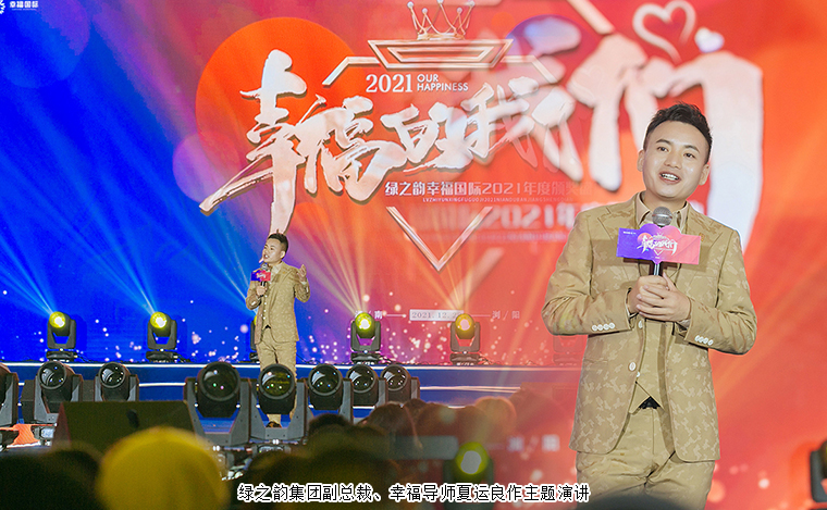 熱烈的掌聲中,綠之韻集團(tuán)副總裁、幸福導(dǎo)師夏運(yùn)良登上舞臺(tái)作主題演講。他表示,今天盛典的主題是“幸福的我們”,綠之韻幸福國(guó)際已走過兩年多的旅程,我們共同經(jīng)歷了風(fēng)雨,收獲了成長(zhǎng),如果一定要找一個(gè)詞,來形容我們這群伙伴,沒什么比“幸福的我們”更合適。2021年,綠之韻幸福國(guó)際腳步堅(jiān)定,共御疫情反復(fù)的考驗(yàn),產(chǎn)品升級(jí)邁上新臺(tái)階,事業(yè)版圖屢創(chuàng)新高。今天的相聚為團(tuán)圓,為表彰,為賦能,更為吹響2022年戰(zhàn)斗的號(hào)角。2022年,綠之韻幸福國(guó)際征戰(zhàn)遠(yuǎn)方,共享智能科技的錦囊,無畏前路荊棘,期待每一位竭力奮戰(zhàn)的幸福代言人,2022再創(chuàng)奇跡,為了我們的幸福,為了幸福的我們,去奮斗!