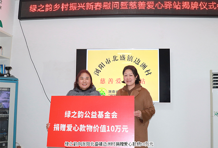 春節(jié)慰問送溫暖,暖冬關(guān)愛顯真情。2022年1月13日,綠之韻鄉(xiāng)村振興建設(shè)暨新春慰問活動走進(jìn)瀏陽北盛鎮(zhèn)邊洲村。綠之韻再次向邊洲村捐贈10萬元愛心款物,主要用于邊洲村鄉(xiāng)村振興建設(shè)和困難群眾新春慰問等,并與村委共建慈善愛心驛站,希望影響更多的愛心企業(yè)和人士來到愛心驛站奉獻(xiàn)愛心,輸送溫暖。