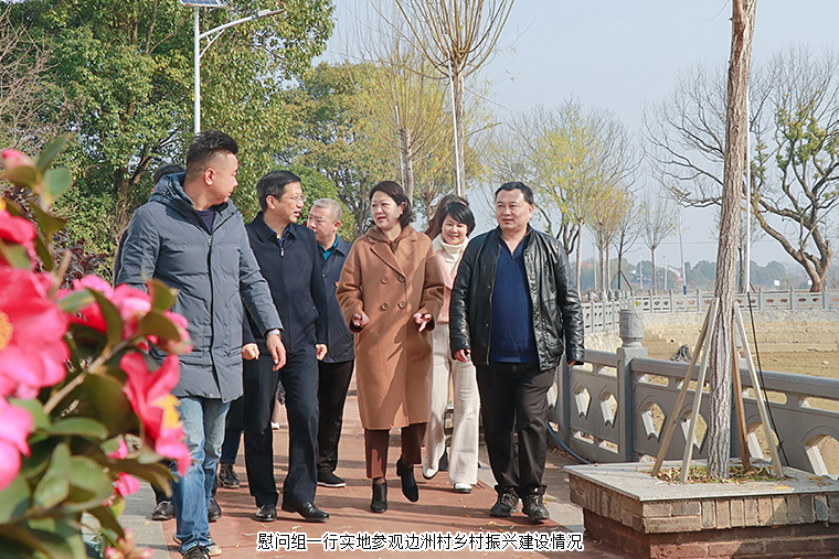 隨后,慰問組一行實地調(diào)研了邊洲村鄉(xiāng)村振興建設(shè)情況,這里正發(fā)生著翻天覆地的變化,集現(xiàn)代農(nóng)業(yè)、休閑旅游、田園居住于一體的“田園綜合體”建設(shè)項目已初見雛形。寬闊平整的道路,錯落有致的民居,滿目皆綠,處處是景。