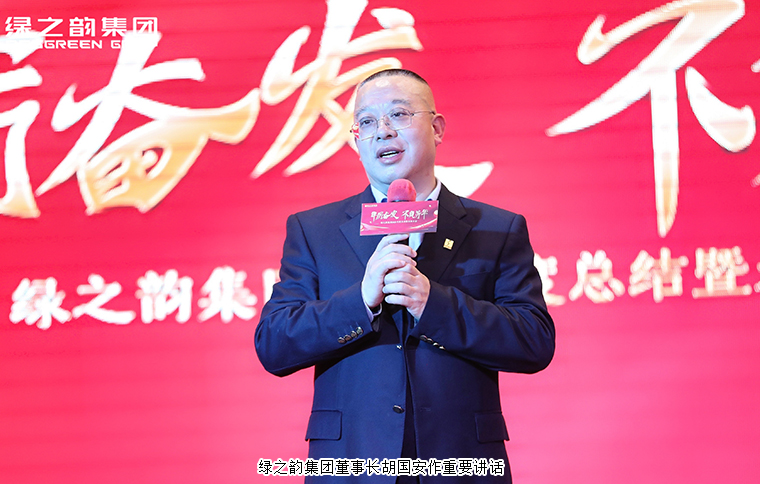 在全場最為熱烈的掌聲中,綠之韻集團(tuán)董事長胡國安上臺(tái)講話。他首先向全體綠之韻家人致以誠摯的新年祝福,并對所有獲獎(jiǎng)集體和個(gè)人予以高度評價(jià)。他表示,從大家身上,能看到不斷奮進(jìn)中的綠之韻故事、綠之韻成績、綠之韻未來……從2021年走來,雖遇坎坷,但綠之韻精神讓我們化險(xiǎn)為夷、堅(jiān)韌生長。未來可期,迎難而上,2022年將面臨更加嚴(yán)峻的考驗(yàn),希望企業(yè)改革和創(chuàng)新管理制度、服務(wù)模式、人才培養(yǎng)機(jī)制,期待奮斗的綠之韻人勠力同心、奮楫爭先,以更大努力、更強(qiáng)自信、更穩(wěn)步伐全力推進(jìn)“第四個(gè)五年規(guī)劃”和“大品牌、大健康、大金融”戰(zhàn)略,保障企業(yè)行穩(wěn)致遠(yuǎn),共同開創(chuàng)綠之韻更加美好的明天。