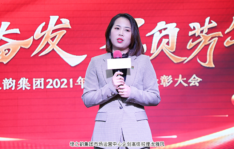 會(huì)上,綠之韻集團(tuán)董事、總裁勞嘉講話。她首先代表集團(tuán)向獲獎(jiǎng)的先進(jìn)集體和個(gè)人致以誠摯的祝福與感謝。她表示,2021年面對復(fù)雜的形勢,綠之韻人這一年干得不容易、過得很充實(shí)、走得很堅(jiān)定,每一次努力都為綠之韻今天的事業(yè)發(fā)展增添新的光華。天下之事不盛則衰,天下之治不進(jìn)則退。站在2022年新的起點(diǎn),我們要牢固樹立“一切以市場為中心”的堅(jiān)定信念,公司各板塊要擰成一個(gè)拳頭,加強(qiáng)服務(wù)意識與業(yè)務(wù)能力,全力推進(jìn)市場發(fā)展,無懼風(fēng)雨,攜手共進(jìn),在新征程上一起向未來。