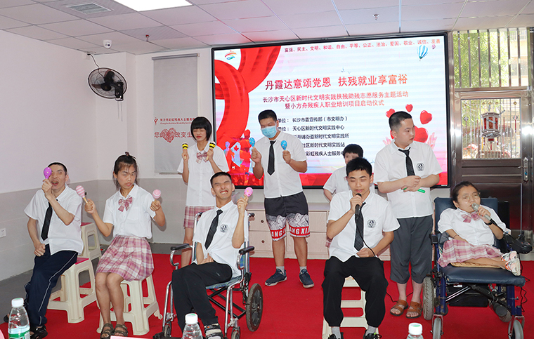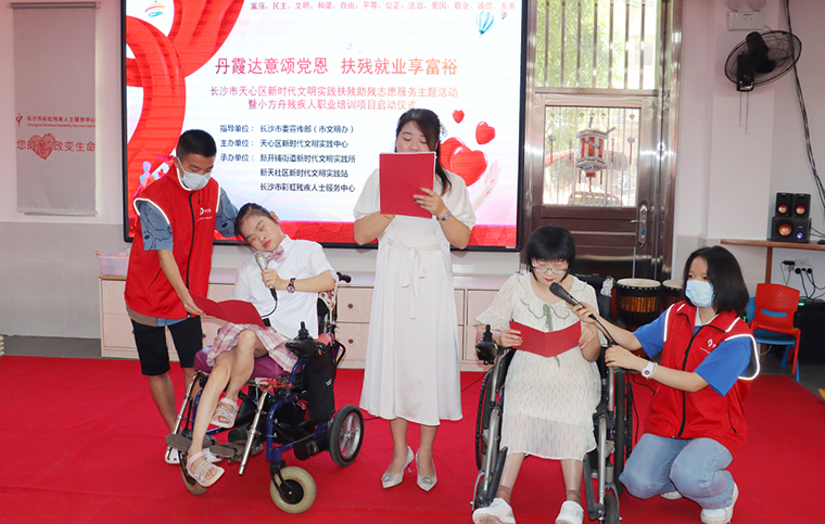2022年7月14日,長(zhǎng)沙市天心區(qū)新時(shí)代文明實(shí)踐扶殘助殘志愿服務(wù)主題活動(dòng)暨小方舟殘疾人職業(yè)培訓(xùn)項(xiàng)目啟動(dòng)儀式舉行。天心區(qū)委宣傳部副部長(zhǎng)、區(qū)文明辦主任李貴勇,天心區(qū)文明辦副主任龔細(xì)梅,長(zhǎng)沙市慈善總會(huì)項(xiàng)目辦主任朱佳,新開鋪街道工委委員、組宣委員薛宏超,新開鋪街道人大工委副主任陳娜,綠之韻公益基金會(huì)秘書長(zhǎng)蔣文等受邀參加活動(dòng)。