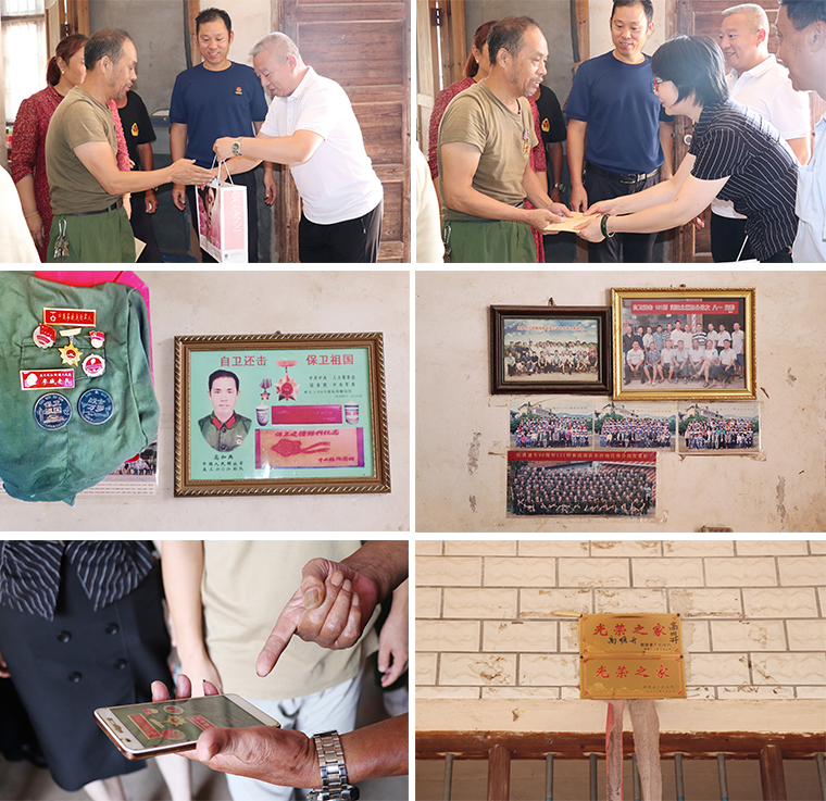 高加典,是瀏陽市北盛鎮(zhèn)邊洲村灘上組人。他不僅是一名越戰(zhàn)參戰(zhàn)老兵,家中更是有著三代從軍的光榮事跡,家中的門頭上高高懸掛著兩塊由湖南省人民政府退役軍人事務(wù)部頒發(fā)的“光榮之家”榮譽(yù)牌匾。據(jù)了解,高加典的叔公曾參加了石牛寨地方解放武裝斗爭,他的父親也作為一名軍人參加了地方武裝斗爭。而他本人則積極響應(yīng)了黨的號召,應(yīng)征入伍,進(jìn)入中國人民解放軍五三六零六部隊,并參加了對越自衛(wèi)反擊戰(zhàn)。在部隊里,他曾三次受到部隊嘉獎,并榮獲一次三等功,胸前閃亮的徽章彰顯著他不平凡的過去。戰(zhàn)爭結(jié)束后,他帶病回鄉(xiāng),卻并不曾忘記自己作為一名軍人的職責(zé),在一次民房失火的救援搶險過程中,他為了救出被困在火場中的群眾英勇負(fù)傷,大腿留下的那塊猙獰傷疤便是他的勛章。