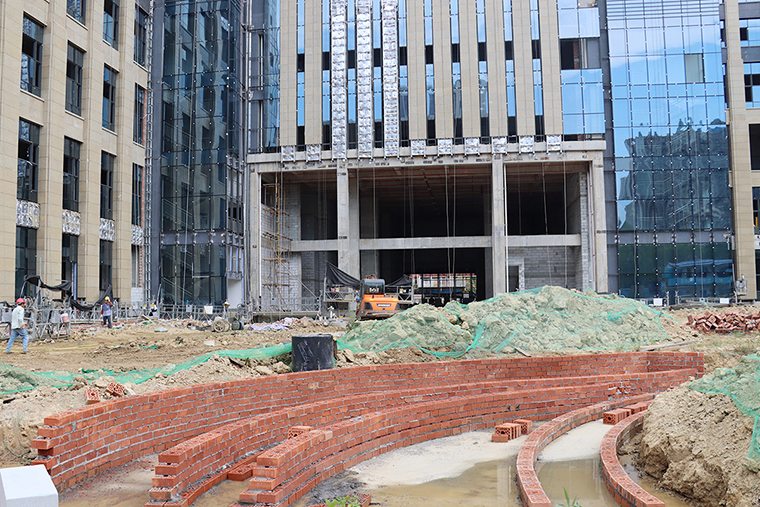 調研組一行在項目工作人員的引導下,查看了整個項目的施工進度及作業(yè)環(huán)境,了解綠之韻中心項目建設安全生產(chǎn)、綠色施工、衛(wèi)生防疫、食品安全等情況。