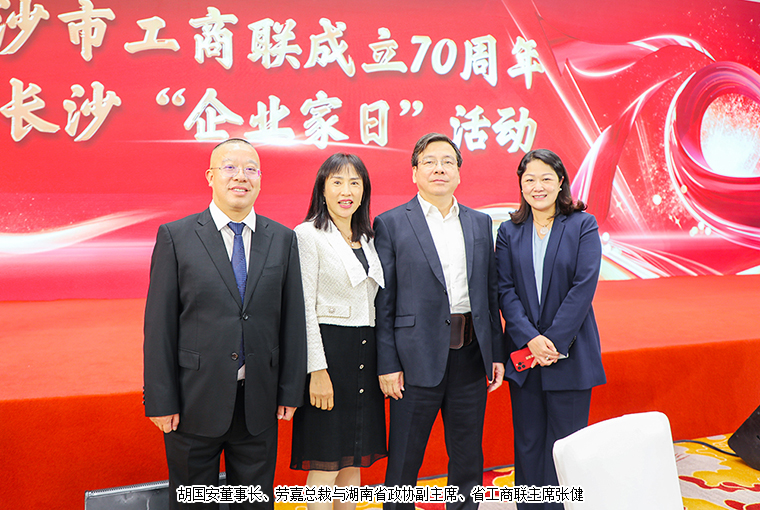 湖南省政協(xié)副主席、省工商聯(lián)主席張健,湖南省委統(tǒng)戰(zhàn)部副部長(zhǎng)、省工商聯(lián)黨組書(shū)記劉事青,長(zhǎng)沙市委副書(shū)記、市長(zhǎng)鄭建新,長(zhǎng)沙市政協(xié)黨組書(shū)記、主席陳剛,市領(lǐng)導(dǎo)劉匯、曹再興、康鎮(zhèn)麟、石長(zhǎng)松、黃鋒,市政協(xié)原副主席、市工商聯(lián)原主席彭繼球、龍?jiān)普?,市政府秘?shū)長(zhǎng)許凡,市政協(xié)秘書(shū)長(zhǎng)駱正平等領(lǐng)導(dǎo)出席活動(dòng)。長(zhǎng)沙市人大代表、湖南省長(zhǎng)沙市光彩事業(yè)基金會(huì)理事長(zhǎng)、綠之韻集團(tuán)董事長(zhǎng)胡國(guó)安,湖南省工商聯(lián)(總商會(huì))常委、長(zhǎng)沙市工商聯(lián)(總商會(huì))副會(huì)長(zhǎng)、綠之韻集團(tuán)董事總裁勞嘉受邀參加會(huì)議。