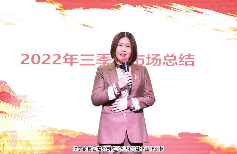 回望過去的奮斗路,大會(huì)首先通過視頻回顧了公司三季度獲得的重要成績(jī)。遙望未來(lái)的奮進(jìn)路,在會(huì)上,綠之韻國(guó)際商學(xué)院常務(wù)副院長(zhǎng)陳敏、綠之韻集團(tuán)常務(wù)副總經(jīng)理梅其慧、綠之韻集團(tuán)市場(chǎng)營(yíng)銷中心總經(jīng)理戴三省分別回顧了過去三個(gè)月市場(chǎng)工作所取得的成就,也提出了下階段工作的目標(biāo)及規(guī)劃,更是為大家加油打氣,要擼起袖子、全力以赴,在最后一個(gè)季度為2022年畫上一個(gè)完美的句號(hào)。