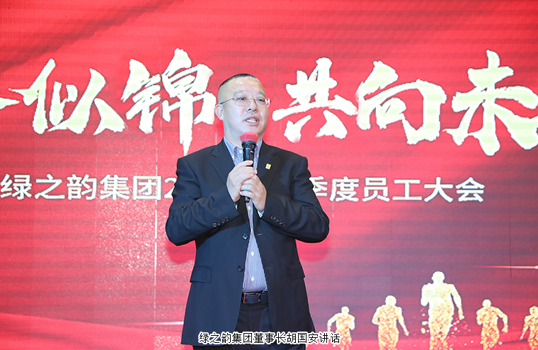 最后,在全場(chǎng)的期待及掌聲中,綠之韻集團(tuán)董事長(zhǎng)胡國(guó)安上臺(tái)作重要講話。他首先代表集團(tuán)公司向獲得“五年服務(wù)英才獎(jiǎng)”“十年服務(wù)忠誠(chéng)獎(jiǎng)”的獲獎(jiǎng)員工表示熱烈祝賀,并向全體員工的辛勤付出致以誠(chéng)摯的謝意。他表示,很多人覺得自己在平凡的崗位上非常普通,但是如果你把自己像一顆螺絲釘一樣永遠(yuǎn)釘在那個(gè)崗位上,那就會(huì)成為問題的發(fā)現(xiàn)者和終結(jié)者。春耕夏長(zhǎng)秋收冬藏,五年和十年受到嘉獎(jiǎng)的同事都是因?yàn)椴粩嗟嘏蛨?jiān)持,才在綠之韻這個(gè)舞臺(tái)收獲了成長(zhǎng),實(shí)現(xiàn)了人生價(jià)值,成為了同事們學(xué)習(xí)的榜樣、父母的驕傲和家族的榮耀。綠之韻是一個(gè)發(fā)展中的企業(yè)、成長(zhǎng)型的企業(yè),同時(shí)也是一個(gè)學(xué)習(xí)型企業(yè),我們將始終堅(jiān)持長(zhǎng)期主義,人才的長(zhǎng)期主義、產(chǎn)品的長(zhǎng)期主義、文化的長(zhǎng)期主義,讓企業(yè)和員工伙伴都能夠得到長(zhǎng)足的發(fā)展。五年、十年在每一個(gè)人的人生長(zhǎng)河中只是滄海一粟,但希望在綠之韻的成長(zhǎng)經(jīng)歷能夠成為大家人生中最精彩的那一段旅程!綠之韻馬上將迎來(lái)二十周年,希望所有綠之韻人以高度的責(zé)任心和強(qiáng)烈的使命感,全力以赴去迎接挑戰(zhàn)。希望每一位家人,既有追趕太陽(yáng)的目標(biāo),又有欣賞月亮情懷,讓我們始終一路相隨,精耕產(chǎn)品,把支部建在連上,深入市場(chǎng)一線,奮勇拼搏,同心同力開創(chuàng)新的輝煌!