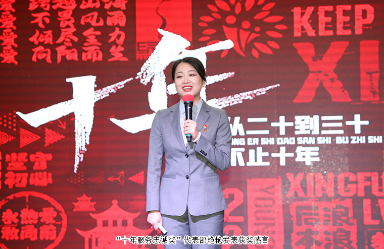 做有品質(zhì)的產(chǎn)品,提供有溫度的服務(wù),一個(gè)優(yōu)秀的企業(yè),一定是有一批優(yōu)秀員工在全身心的投入。經(jīng)歷了三季度,綠之韻擁抱變化,迎接挑戰(zhàn),又迎來(lái)了一批標(biāo)桿,他們用自身行動(dòng)證明,逆風(fēng)飛揚(yáng),贏在堅(jiān)持。本次大會(huì)頒發(fā)了“五年服務(wù)英才獎(jiǎng)”“十年服務(wù)忠誠(chéng)獎(jiǎng)”等獎(jiǎng)項(xiàng)。戴明玉、譚慧洋、林智文、劉偉、賀瑤、廖娜、劉靜、徐繼雷、袁登科、劉燚淼、李勇男、董詩(shī)媞、李斌榮膺“五年服務(wù)英才獎(jiǎng)”,邵艷艷、侯俊霞、文冰、王娟、湛芳瓊、阮毅、夏丹、楊丹、羅黎、胡樹鋒、李向宇榮膺“十年服務(wù)忠誠(chéng)獎(jiǎng)”,綠之韻集團(tuán)副總裁胡均安、綠之韻集團(tuán)董事總裁勞嘉分別為獲獎(jiǎng)員工頒發(fā)獎(jiǎng)?wù)屡c榮譽(yù)證書,并致以熱烈祝賀?!拔迥攴?wù)英才獎(jiǎng)”代表戴明玉和“十年服務(wù)忠誠(chéng)獎(jiǎng)”代表邵艷艷、楊丹分別發(fā)表獲獎(jiǎng)感言。