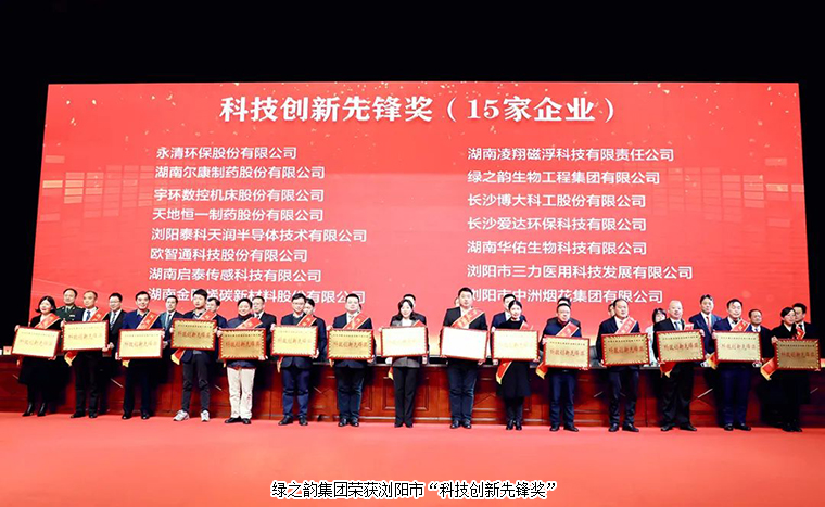 會(huì)上,中共瀏陽(yáng)市委常委、常務(wù)副市長(zhǎng)馮賽軍宣讀了由瀏陽(yáng)市委市政府印發(fā)的《瀏陽(yáng)市人民政府關(guān)于2022年度財(cái)政性資金獎(jiǎng)勵(lì)政策兌現(xiàn)的通知》《中共瀏陽(yáng)市委瀏陽(yáng)市人民政府關(guān)于表彰瀏陽(yáng)市勇當(dāng)“強(qiáng)省會(huì)”戰(zhàn)略開(kāi)路先鋒先進(jìn)集體和先進(jìn)個(gè)人的決定》,對(duì)近年來(lái)在瀏陽(yáng)市深入貫徹黨的十九屆歷次全會(huì)及黨的二十大精神、全面落實(shí)“三高四新”戰(zhàn)略定位和使命任務(wù)、勇當(dāng)強(qiáng)省會(huì)戰(zhàn)略開(kāi)路先鋒、推動(dòng)經(jīng)濟(jì)高質(zhì)量發(fā)展中涌現(xiàn)出的一大批敢闖敢干、唯實(shí)惟先先進(jìn)單位和個(gè)人予以表彰獎(jiǎng)勵(lì)。綠之韻集團(tuán)憑借著在產(chǎn)品研發(fā)、科技創(chuàng)新方面的優(yōu)異表現(xiàn)榮獲瀏陽(yáng)市“科技創(chuàng)新先鋒獎(jiǎng)”。
