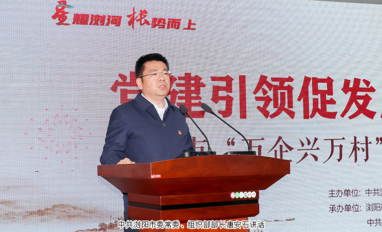 中共瀏陽市委常委、組織部部長唐安石講話。他向長期以來關(guān)心支持瀏陽鄉(xiāng)村振興的廣大企業(yè)家和社會各界人士表示衷心的感謝。他提出,一是要強(qiáng)化黨建引領(lǐng)。鄉(xiāng)鎮(zhèn)要當(dāng)好全面推進(jìn)鄉(xiāng)村振興的一線作戰(zhàn)部,做到黨委強(qiáng)、機(jī)制順、隊(duì)伍活。村支書要發(fā)揮領(lǐng)頭雁作用,帶領(lǐng)村兩委班子苦干實(shí)干,攻堅(jiān)克難。駐村第一書記和工作隊(duì)要切實(shí)履職盡責(zé),廣大農(nóng)村黨員要發(fā)揮先鋒模范作用,帶領(lǐng)群眾奮發(fā)圖強(qiáng)。民營企業(yè)黨組織要積極承擔(dān)社會責(zé)任,助力鄉(xiāng)村振興共同富裕,把黨的組織優(yōu)勢轉(zhuǎn)化為推動鄉(xiāng)村全面振興的強(qiáng)大動能。二是要抓好產(chǎn)業(yè)發(fā)展。萬企興萬村要取得實(shí)效,關(guān)鍵在產(chǎn)業(yè)。按照“一村一品”的思路幫扶,培育壯大特色優(yōu)勢產(chǎn)業(yè),打造精品產(chǎn)業(yè)。三是要做實(shí)企業(yè)服務(wù),支持民營企業(yè)民營經(jīng)濟(jì)發(fā)展壯大,始終把民營企業(yè)和民營企業(yè)家當(dāng)作自己人,為企業(yè)提供“誠心、用心、專心、精心、傾心”為代表的“五心”級服務(wù),全力優(yōu)化營商環(huán)境,助推民營企業(yè)高質(zhì)量發(fā)展。