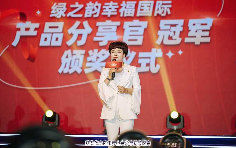 他們有一種朝氣蓬勃的力量,用實際行動去感召,以人格魅力去駕馭,用專業(yè)知識去征服,他們是市場精英中的佼佼者,永遠(yuǎn)奔赴在市場的第一線,把優(yōu)質(zhì)產(chǎn)品分享給身邊每一個人。綠之韻國際商學(xué)院執(zhí)行院長黎芋成為“2023產(chǎn)品分享官達(dá)成率(動力訓(xùn))冠軍”頒獎。獲獎代表曹紅分享獲獎感言。