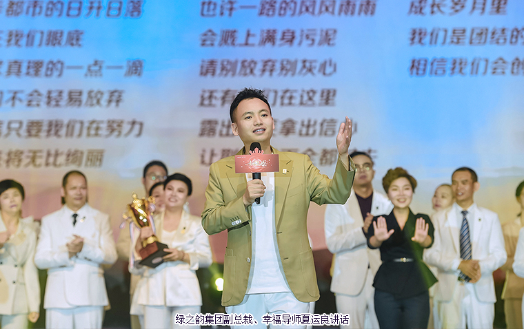 “也許成長的日子里,一路是坎坷荊棘,也許一路的風(fēng)風(fēng)雨雨,會濺上滿身污泥,請別放棄別灰心,還有我們在這里,露出微笑拿出信心,讓荊棘風(fēng)雨全都過去,相信只要我們在努力,未來將無比絢麗?!?在活動接近尾聲之時,綠之韻集團副總裁、幸福導(dǎo)師夏運良現(xiàn)場演唱《相信我們會創(chuàng)造奇跡》,將創(chuàng)業(yè)過程中的努力與堅持傾注于歌曲之中,打動全場。他向大會現(xiàn)場以及通過直播互動視頻觀看本次大會盛況的綠之韻幸福國際家人們致以熱烈的歡迎和誠摯的問候,并向每一位獲獎?wù)弑硎緹崃业淖YR。春雨溫潤,萬物生長,這是一個孕育希望與夢想的季節(jié)。他希望所有幸福代言人都能帶著這份奮進力量勇敢前行,去創(chuàng)造屬于每個人的奇跡!