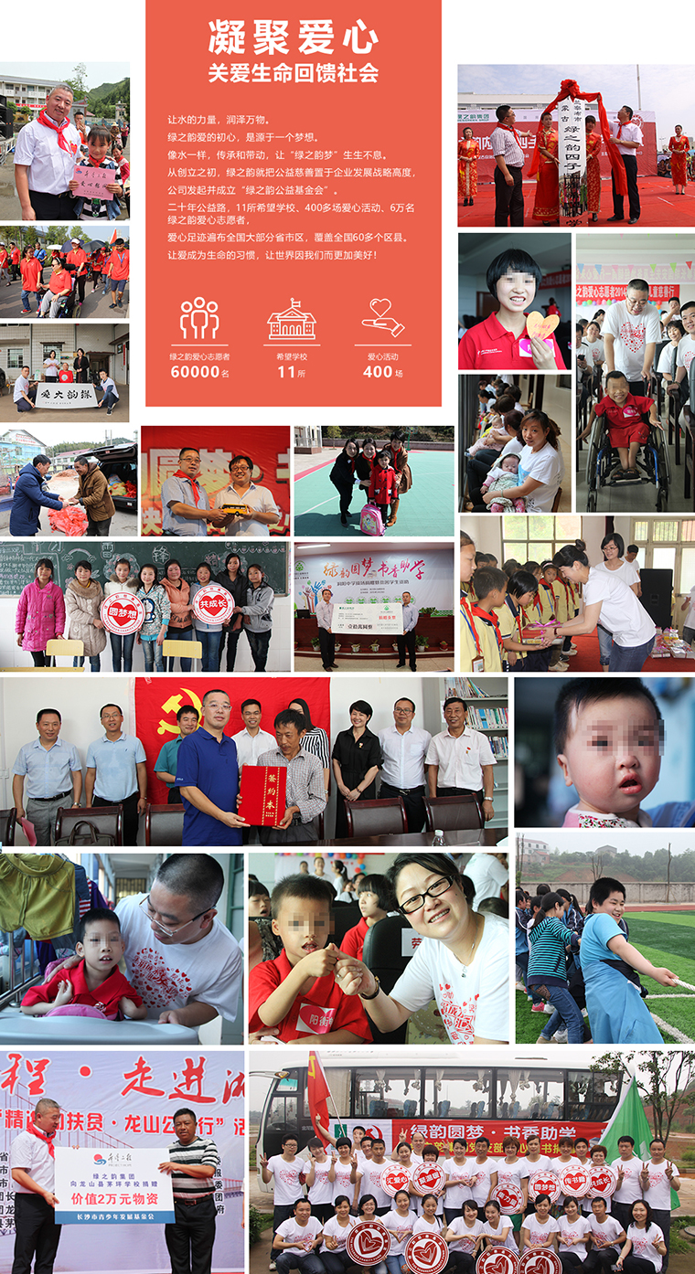 20年公益路,綠之韻捐建了11所綠之韻希望學(xué)校,與10余所大學(xué)攜手樹人行動(dòng),幫扶10000余名困難學(xué)子與家庭;400多場(chǎng)愛心活動(dòng),60000名綠之韻愛心志愿者,足跡遍布湖南、湖北、福建、廣東、廣西、安徽、四川、內(nèi)蒙古、河北、山東、黑龍江、吉林、遼寧等全國大部分省市區(qū),覆蓋全國60多個(gè)區(qū)縣,改變無數(shù)人的命運(yùn)。未來,在經(jīng)開區(qū)關(guān)工委和基金會(huì)黨組織的帶領(lǐng)下,綠之韻將不斷探索關(guān)心下一代的新思路、新方式和新途徑,以實(shí)際行動(dòng)為下一代健康成長(zhǎng)貢獻(xiàn)一份力量,共筑社會(huì)和諧友好!