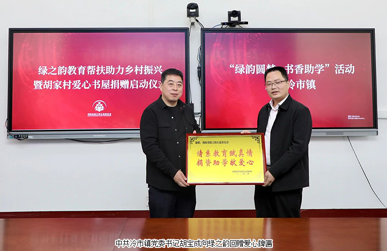 為積極響應(yīng)湖南省“民企興縣 跨越同行”助力鄉(xiāng)村振興重點幫扶縣專項行動,2023年3月31日,綠之韻集團通過湖南省綠之韻公益基金會“書香助學(xué)項目”捐贈100萬元愛心款項,用于安化縣冷市鎮(zhèn)胡家村愛心書屋建設(shè)及在安化大橋?qū)W校設(shè)立“綠韻圓夢獎學(xué)金”,支持鄉(xiāng)村振興文化建設(shè)和教育事業(yè)發(fā)展。