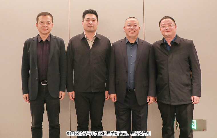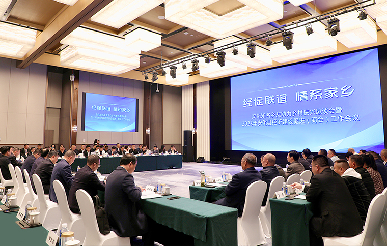 經(jīng)促聯(lián)誼,情系家鄉(xiāng)。4月4日,安化知名鄉(xiāng)友助力鄉(xiāng)村振興懇談會(huì)暨2023年安化縣經(jīng)濟(jì)建設(shè)促進(jìn)(商會(huì))工作會(huì)議召開。中共安化縣委書記石錄明,縣委副書記、縣長潘文劍,安化縣人大常委會(huì)黨組書記、主任陳飛燕,安化縣政協(xié)黨組書記、主席胡能華,中共安化縣委常委、常務(wù)副縣長謝可贊,縣人民政府副縣長瞿東江,縣政協(xié)副主席肖偉群,縣政協(xié)副主席、縣工商聯(lián)主席劉暢術(shù),縣政協(xié)黨組成員、副主席劉學(xué)軍,縣政協(xié)副主席陳賽男,湖南安化經(jīng)濟(jì)開發(fā)區(qū)黨工委副書記、管委會(huì)主任胡盛云等領(lǐng)導(dǎo)出席會(huì)議。長沙市人大代表、中國國際商會(huì)湖南商會(huì)副會(huì)長、湖南省慈善總會(huì)副會(huì)長、安化縣經(jīng)濟(jì)建設(shè)促進(jìn)會(huì)長沙分會(huì)理事長(長沙市安化商會(huì)會(huì)長)、綠之韻集團(tuán)董事長胡國安與武漢分會(huì)、華東分會(huì)、重慶分會(huì)等全國15個(gè)經(jīng)促分會(huì)會(huì)長、秘書長以及100多位知名鄉(xiāng)友聚集一堂,暢談血脈鄉(xiāng)情、助力家鄉(xiāng)發(fā)展,為安化縣進(jìn)一步優(yōu)化營商環(huán)境、振興實(shí)體經(jīng)濟(jì)、推動(dòng)高質(zhì)量發(fā)展出點(diǎn)子、獻(xiàn)良策。