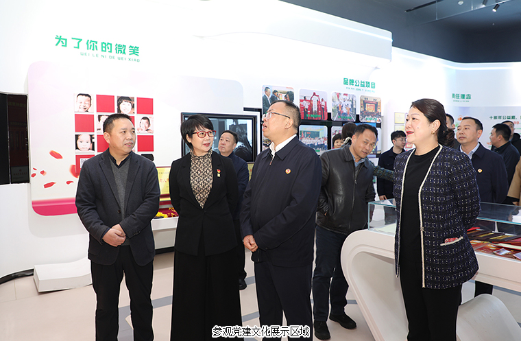 在黨建文化展示區(qū)域,綠之韻集團黨委書記劉云向調(diào)研組一行詳細介紹綠之韻非公黨建情況。多年來,集團黨委堅持構(gòu)建以集團黨組織為核心,以集團工會、公益基金會為主體,打造紅色基因塑造的新時代非公黨建新生態(tài),在全行業(yè)內(nèi)創(chuàng)建了第一家黨建文化教育基地,形成了具有綠之韻特色的非公黨建工作品牌。集團黨委歷年來多次被各級黨組織授予“先進基層黨組織”、“黨建示范點”、“標桿引領(lǐng)先進基層黨組織”等榮譽稱號。