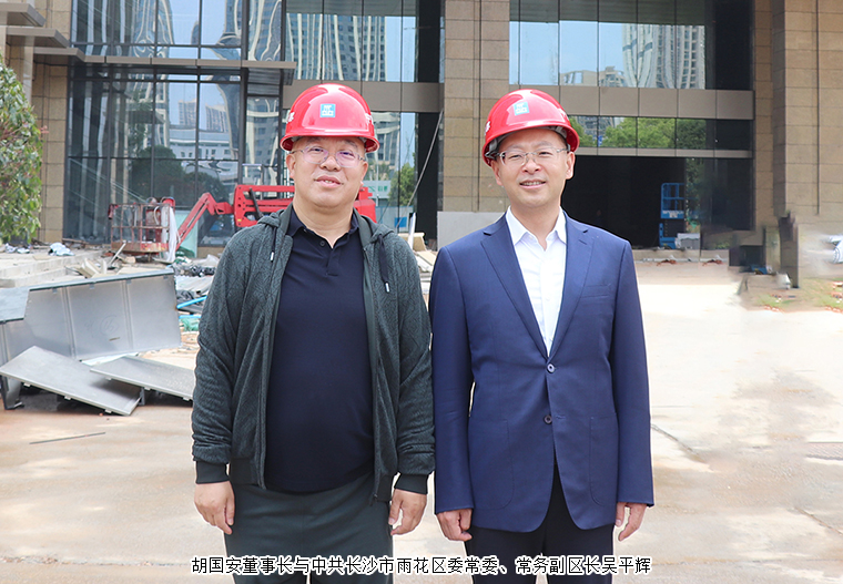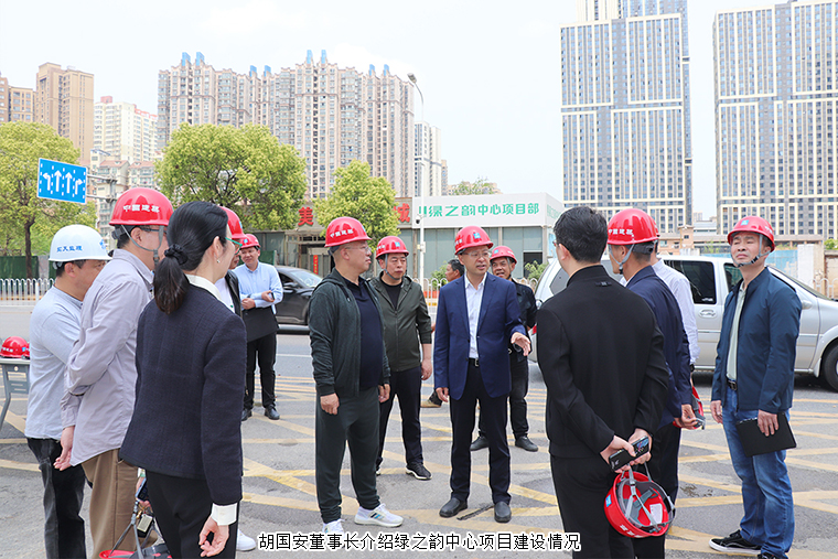 胡國安董事長向調研組一行介紹綠之韻中心項目建設情況。綠之韻集團投資建設的綠之韻中心項目及配套物業(yè)總面積逾12萬平米,總投資20億元人民幣。項目由一棟萬豪五星級酒店和一棟甲級寫字樓及裙樓組成,先后獲評2021年湖南省及長沙市建設工程安全生產(chǎn)和質量管理標準化示范觀摩工地、長沙市結構優(yōu)良工程、全國建設工程安全生產(chǎn)標準化示范工地、2021年長沙市建設工程“質量管理標兵”、2021年長沙市建設工程質量管理標準化班組、湖南省第42次QC小組成果二等獎、2020年及2021年質量安全管理標準化考評優(yōu)良工地、2021年長沙市綠色示范工地,目前已進入全面裝修階段。綠之韻中心項目建成后,將新增長沙市勞動就業(yè)約2000人,為長沙市每年創(chuàng)造GDP逾3億元人民幣,為雨花區(qū)每年創(chuàng)造利稅逾3000萬元人民幣,同時作為雨花區(qū)高端商務會議型酒店,將更加完善高橋商圈商業(yè)配套,為瀏陽河風光帶增添一個新的基礎設施,為雨花區(qū)廣招天下商客,進一步擴大對外開放打造一個新的平臺和一張靚麗的名片。