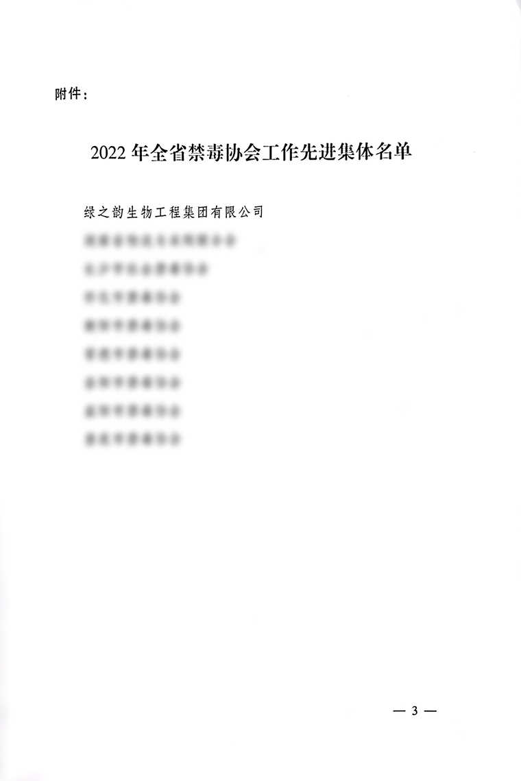 會議伊始,湖南省禁毒協(xié)會秘書長盧敏作工作報告,報告全面總結(jié)了2022年度全省禁毒協(xié)會工作。2022年,省禁毒協(xié)會整合社會資源,積極開展禁毒宣傳教育、吸毒人員戒治幫扶、走訪調(diào)研、撫恤慰問等工作,協(xié)會工作取得新成效。省禁毒協(xié)會獲評湖南省最美公益普法集體,湖南省禁毒全媒體中心獲評2022年度湖南省好網(wǎng)民項目, “我是答題王”湖南省禁毒知識競賽項目獲評2022年度湖南省最佳志愿服務(wù)項目, “青春手牽手”“健康無毒、青春無悔”禁毒宣傳項目攬獲第六屆中國青年志愿服務(wù)項目大賽金獎、銀獎。隨后,衡陽、常德市禁毒協(xié)會及優(yōu)秀禁毒講師代表在會上作經(jīng)驗發(fā)言,交流探討了各地禁毒工作的經(jīng)驗做法。會上湖南省禁毒協(xié)會決定對 2022 年禁毒協(xié)會工作成績突出的集體進(jìn)行表彰。湖南省禁毒協(xié)會常務(wù)理事、省公安廳禁毒總隊預(yù)防教育支隊支隊長、二級高級警長彭國清宣讀表揚(yáng)通報。綠之韻集團(tuán)被評為“2022年度湖南省禁毒協(xié)會工作先進(jìn)集體”。