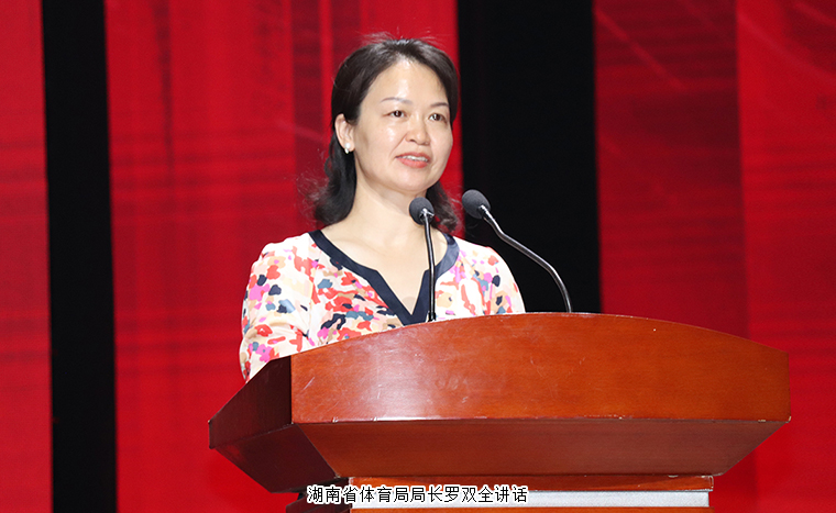 隨后,湖南省體育局局長(zhǎng)羅雙全講話并為“湖南省幼兒體質(zhì)健康促進(jìn)研究基地”授牌。她在講話中鼓勵(lì)學(xué)生們要以奧運(yùn)冠軍為榜樣,將他們拼搏堅(jiān)持的精神轉(zhuǎn)化在育人路上。她說到,未來,成為教師的你們要為下一代播下熱愛體育的種子、培養(yǎng)一門體育特長(zhǎng)、鍛煉體魄與心智,讓以體育人、以體樹人生動(dòng)結(jié)合,實(shí)現(xiàn)體育精神的傳承。
