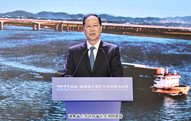 交流會上,中共湖南省委副書記、省長毛偉明講話。他說:當(dāng)前,湘港澳三地面臨共建“一帶一路”、泛珠三角區(qū)域合作、粵港澳大灣區(qū)發(fā)展等重大戰(zhàn)略機遇。真誠希望湘港澳三地加強交流合作,在貿(mào)易融通中開拓市場,在用好“兩個市場、兩種資源”上深化合作,強化更加便捷高效的通關(guān)服務(wù),支持企業(yè)攜手開拓國際市場,推動一流企業(yè)、頂尖人才、新興產(chǎn)業(yè)引向湖南,幫助“湖南制造”“湖南創(chuàng)造”走向世界。在產(chǎn)業(yè)融合中實現(xiàn)共贏,推動產(chǎn)業(yè)聯(lián)動、市場互通、創(chuàng)新協(xié)同,重點把湖南先進制造業(yè)與港澳現(xiàn)代服務(wù)業(yè)優(yōu)勢結(jié)合起來,共同構(gòu)建現(xiàn)代化產(chǎn)業(yè)體系。在金融融渥中協(xié)作互利,歡迎港澳金融機構(gòu)入駐湖南、拓展業(yè)務(wù),湖南將推動湖南優(yōu)勢產(chǎn)業(yè)和優(yōu)質(zhì)企業(yè),在港澳上市融資、參與國際并購、開展全球經(jīng)營。在文旅融匯中深化交流,全面加強與港澳在文化旅游、傳媒影視、教育交流等方面融合,把人文交流不斷引向深入。他表示,要深入貫徹習(xí)近平總書記關(guān)于粵港澳大灣區(qū)建設(shè)的系列重要論述精神以及關(guān)于湖南工作的重要講話重要指示批示精神,把國家所需、港澳所長、湖南所優(yōu)融合起來,推動湘港澳融合發(fā)展多結(jié)碩果,讓紫荊花、白蓮花、芙蓉花各美其美、美美與共。