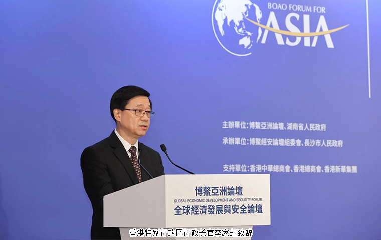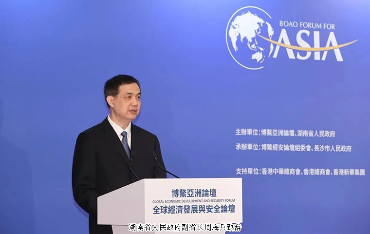 香港特別行政區(qū)行政長官李家超在致辭中強調(diào)了人類命運共同體理念,全球發(fā)展倡議和全球安全倡議,肯定了香港特區(qū)和博鰲經(jīng)安論壇對發(fā)展與安全這兩個全球關(guān)注的議題的高度重視。李家超指出,香港作為國家的一部分,地球村的一分子,必須不斷發(fā)揮“一國兩制”下背靠祖國、聯(lián)通世界的得天獨厚優(yōu)勢,走好國際化路線,全力拼經(jīng)濟、拼發(fā)展、拼競爭力,為建設(shè)美好香港、為共建人類命運共同體作出貢獻。湖南省人民政府副省長周海兵向與會嘉賓介紹了近年來湖南省經(jīng)濟社會事業(yè)高質(zhì)量發(fā)展所取得的成就,他指出,博鰲亞洲論壇與湖南省將于今年10月共同舉辦博鰲經(jīng)安論壇第二屆大會,為各國應(yīng)對經(jīng)濟發(fā)展與安全新挑戰(zhàn)、實現(xiàn)可持續(xù)發(fā)展繼續(xù)提供“博鰲方案”、貢獻“湖南力量”。周海兵表示,第二屆大會必將是一場思想的盛宴、合作的盛會,期待博鰲亞洲論壇與湖南省以舉辦第二屆經(jīng)安大會為契機,精誠合作、攜手共贏,進一步深化彼此在各領(lǐng)域的務(wù)實合作,全方位推動高質(zhì)量發(fā)展。