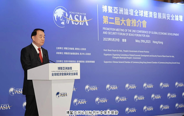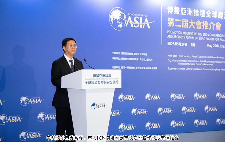 聚焦世界期待,推開交流窗口。5月29日上午,博鰲亞洲論壇全球經(jīng)濟發(fā)展與安全論壇第二屆大會推介會在香港嘉里酒店舉行。本次活動由博鰲亞洲論壇、湖南省人民政府共同主辦,博鰲經(jīng)安論壇組委會、長沙市人民政府共同承辦,香港中華總商會、香港總商會、香港新華集團提供支持。博鰲亞洲論壇秘書長李保東,香港特別行政區(qū)行政長官李家超,湖南省人民政府副省長周海兵,香港中華總商會會長蔡冠深,中共長沙市委常委、市人民政府常務(wù)副市長彭華松,博鰲經(jīng)安論壇大會主席曾偉雄出席推介會并致辭。