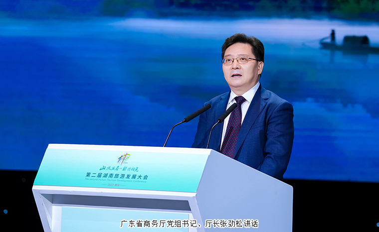 大會(huì)伊始,中共郴州市委書記吳巨培致歡迎詞并作郴州市文旅推薦。隨后,廣東省商務(wù)廳黨組書記、廳長(zhǎng)張勁松講話。他表示,湖南和廣東在國(guó)家發(fā)展大局中都具有重要地位。廣東和湖南地緣相近,經(jīng)濟(jì)相融,兩地要加強(qiáng)合作,互相支持,潛力巨大。山水畫卷,郴州相見。我們眺望“芙蓉國(guó)里盡朝暉”的瀟湘大地,品讀“萬(wàn)水千山總是情”的郴州畫卷。山鄉(xiāng)似水,林中之意,展示給我們的不僅僅是山水之美,還有人文之美,更是心靈之美。今年9月,第二屆湖南旅發(fā)大會(huì)將在郴州舉辦,今天我們?cè)谶@里相會(huì),也是從這里出發(fā),向著天下第十八福地郴州去度過(guò)一段難忘的幸福時(shí)光。