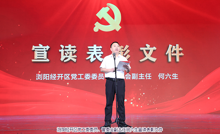 大會(huì)伊始,瀏陽(yáng)經(jīng)開(kāi)區(qū)黨工委書(shū)記鄭以仁致辭。他表示,在中國(guó)共產(chǎn)黨誕辰102周年之際,我們?cè)谶@里隆重聚會(huì)共同慶祝黨的生日,大力表彰在園區(qū)高質(zhì)量發(fā)展進(jìn)程中涌現(xiàn)出來(lái)的先進(jìn)集體和先進(jìn)個(gè)人,以先進(jìn)的事跡感染人、吸引人,以崇高的精神激勵(lì)人、鼓舞人,進(jìn)一步激發(fā)園區(qū)各級(jí)黨組織和廣大黨員干部人員見(jiàn)賢思齊、創(chuàng)先爭(zhēng)優(yōu),著力營(yíng)造學(xué)習(xí)先進(jìn)、崇尚先進(jìn)、爭(zhēng)當(dāng)先進(jìn)的良好氛圍。他代表黨工委向今天受到表彰的組織和個(gè)人表示熱烈的祝賀,向奮斗在各條戰(zhàn)線上的廣大黨員同志致以崇高的敬意和節(jié)日的問(wèn)候。2023年是全面貫徹落實(shí)黨的二十大精神的開(kāi)局之年,也是瀏陽(yáng)經(jīng)開(kāi)區(qū)高質(zhì)量發(fā)展、金陽(yáng)新城建設(shè)的跨越之年。各級(jí)黨組織和廣大黨員要把加強(qiáng)黨的全面領(lǐng)導(dǎo)作為行動(dòng)指南,凝心聚力、實(shí)干擔(dān)當(dāng)、勇建新功。要在旗幟鮮明講政治上做示范,成為絕對(duì)忠貞的踐行者;要在強(qiáng)化組織建堡壘上下功夫,成為紅色引擎的助推器;要在錘煉打磨真本領(lǐng)上當(dāng)表率,成為攻堅(jiān)克難的帶頭人。他希望,黨員同志能高舉習(xí)近平新時(shí)代中國(guó)特色社會(huì)主義思想的偉大旗幟,不斷推動(dòng)黨建工作再上新臺(tái)階,以高質(zhì)量黨建賦能高質(zhì)量發(fā)展,為加快建設(shè)具有核心競(jìng)爭(zhēng)力的現(xiàn)代化產(chǎn)業(yè)園區(qū)與努力奮斗。