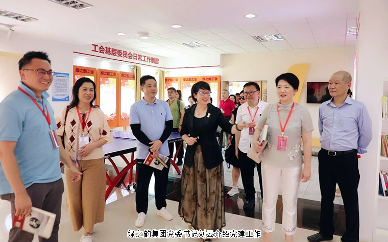 隨后,代表團(tuán)一行來(lái)到黨建文化教育基地。綠之韻集團(tuán)黨委書記劉云就非公黨建情況向考察組一行作了詳細(xì)介紹。綠之韻始終將非公黨建工作置于發(fā)展戰(zhàn)略高度,自2006年成立黨支部,2013年獲批成立黨總支,2016年8月獲批成立黨委以來(lái),堅(jiān)持構(gòu)建以集團(tuán)黨組織為核心,以集團(tuán)工會(huì)、公益基金會(huì)為主體,注重紅色基因塑造的新時(shí)代非公黨建新生態(tài),實(shí)施“指導(dǎo)式”“責(zé)任式”“溫情式”管理,在全行業(yè)內(nèi)創(chuàng)建了第一家黨建文化教育基地,形成了具有綠之韻特色的非公黨建工作品牌。