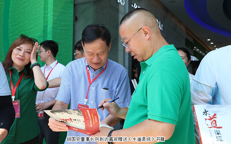參觀最后,胡國(guó)安董事長(zhǎng)向到訪嘉賓贈(zèng)送了《水道渠成》書籍。他表示,在時(shí)代的變遷中,湘港始終攜手前行,親如一家。如今,湖南與香港,交流合作的精彩故事還在不斷續(xù)寫,更多美好的期待正在時(shí)間里沉淀、發(fā)酵、升華。今年是綠之韻集團(tuán)成立二十周年,一直以來(lái)綠之韻始終把企業(yè)自身發(fā)展和國(guó)家經(jīng)濟(jì)社會(huì)發(fā)展緊密相結(jié)合,作為長(zhǎng)沙市海外聯(lián)誼會(huì)副會(huì)長(zhǎng)、香港長(zhǎng)沙聯(lián)誼會(huì)會(huì)長(zhǎng),他將繼續(xù)發(fā)揮緊密聯(lián)系經(jīng)濟(jì)界的優(yōu)勢(shì),深入開展形式多樣的湘港兩地聯(lián)誼活動(dòng),凝聚廣大港籍湘籍企業(yè)家力量,內(nèi)外挖潛,擴(kuò)容拓新,有效推動(dòng)會(huì)員間商務(wù)往來(lái)、項(xiàng)目合作、技術(shù)交流等,引導(dǎo)和帶動(dòng)粵港澳大灣區(qū)“骨干”企業(yè)投資長(zhǎng)沙,推進(jìn)香港長(zhǎng)沙經(jīng)濟(jì)文化全方位深度合作,助推兩地共同繁華,為建設(shè)中國(guó)式現(xiàn)代化長(zhǎng)沙高質(zhì)量發(fā)展貢獻(xiàn)更大的力量。