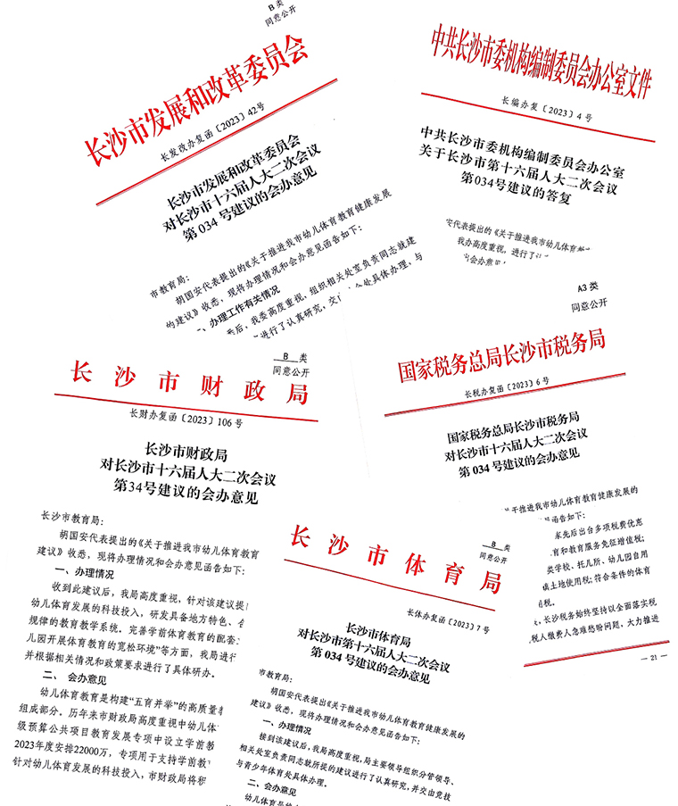 長沙市委編辦、市發(fā)展改革委、市財政局、市體育局、市稅務(wù)局分別對胡國安代表提出《關(guān)于推進我市幼兒體育教育健康發(fā)展》建議的辦理工作開展情況、會辦意見、下階段辦理情況等進行了補充匯報。