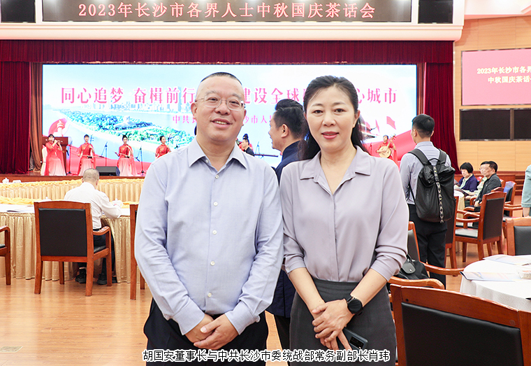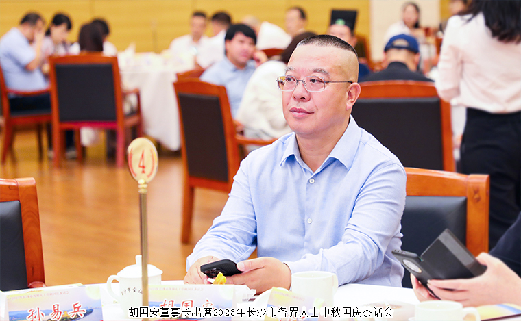 2023年9月28日,長沙市舉行中秋國慶茶話會(huì)。湖南省人民政府副省長、中共長沙市委副書記、市長周海兵出席活動(dòng)。譚勇、文樹勛、陳剛、彭華松、陳剛(紀(jì)委)、劉匯、鄒特、汪立生、張賢遵、簡用超、姚五零等市領(lǐng)導(dǎo)和老同志出席。長沙市人大代表、中國國際商會(huì)湖南商會(huì)副會(huì)長、香港長沙聯(lián)誼會(huì)會(huì)長、綠之韻集團(tuán)董事長胡國安與全市各界人士代表歡聚一堂,共賀佳節(jié),共敘情誼,共話發(fā)展。