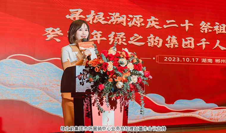 歲月不居,時節(jié)如流,廿念同心,共耀美好。10月17日下午6點半,癸卯年綠之韻集團千人祭祀舜帝典禮歡迎晚宴正式啟幕。傍晚時分,綠之韻集團董事長胡國安、董事總裁勞嘉、常務副總裁胡均安攜公司高管團隊、合作伙伴及精英代表們陸續(xù)抵達晚宴現(xiàn)場,大家紛紛在互動區(qū)合影,留下攜手共進的笑顏與向新前行的信念。晚宴伊始,綠之韻集團董事、總裁勞嘉致歡迎辭。她首先代表集團公司對各位領導、嘉賓和綠之韻家人們的到來表示熱烈的歡迎和誠摯的問候。在致辭中,她向大家介紹了20周年公司舉辦的系列活動,今年5月,3000名事業(yè)伙伴集結人文地標橘子洲,共同為愛奔跑;緊接著,開展了20周年歷程展、尋根溯源取水儀式、出品了20周年《綠之韻賦》和主題曲,推出了20周年紀念版產(chǎn)品禮盒……這每一場品牌文化活動,每一個創(chuàng)新突破的背后,都傳遞著“回歸初心、厚植文化、堅守匠心”理念和情懷。她衷心感謝每一位事業(yè)伙伴和家人,感謝大家的選擇、相信、努力和堅持,讓綠之韻這個名字,熠熠生輝。青春氣貫長虹,20歲的綠之韻如日東升、風華正茂。她希望,每一個綠之韻人都能以全新的姿態(tài)去迎接未來屬于我們共同的30年、40年、50年……“共建百年企業(yè),共筑世界名牌”。