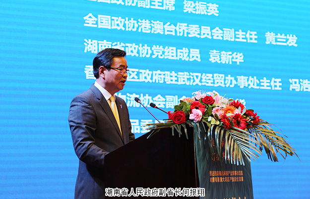 全國政協(xié)副主席梁振英出席論壇并講話,他表示:粵港澳大灣區(qū)的發(fā)展不僅讓區(qū)域內(nèi)的合作更加密切,灣區(qū)亦可作為一個整體“走出去”,這將帶來更大的發(fā)展機遇。中共湖南省委書記、省人大常委會主任杜家毫發(fā)表致辭。他在致辭中表示:粵港澳大灣區(qū)建設(shè)是中央親自謀劃、親自部署、親自推動的國家戰(zhàn)略。多年來,湖南的改革開放與粵港澳地區(qū)的發(fā)展緊密相連,對接粵港澳大灣區(qū)是湖南新時期對外開放的重要機遇,也是廣大企業(yè)的重大商機。舉辦本次高峰論壇就是為了搶抓發(fā)展機遇,主動對接國家戰(zhàn)略,深化拓展與大灣區(qū)乃至世界各地的全面合作,促進湖南經(jīng)濟高質(zhì)量發(fā)展。