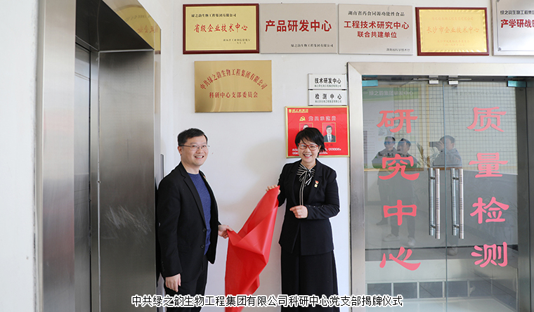 2024 年 1 月 12 日,中共綠之韻生物工程集團(tuán)有限公司科研中心黨支部揭牌儀式舉行。綠之韻集團(tuán)黨委書記劉云、副書記許達(dá)仲、工會(huì)主席馮紅等領(lǐng)導(dǎo)帶領(lǐng)集團(tuán)各支部書記及黨員代表出席儀式,共同見證這一重要時(shí)刻。