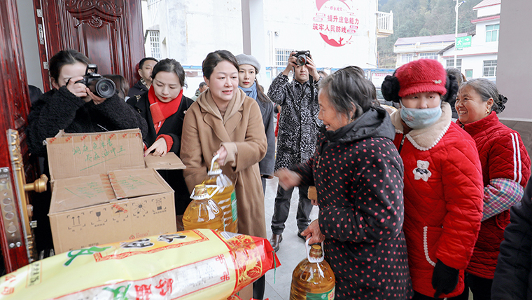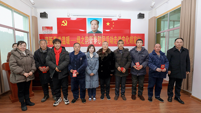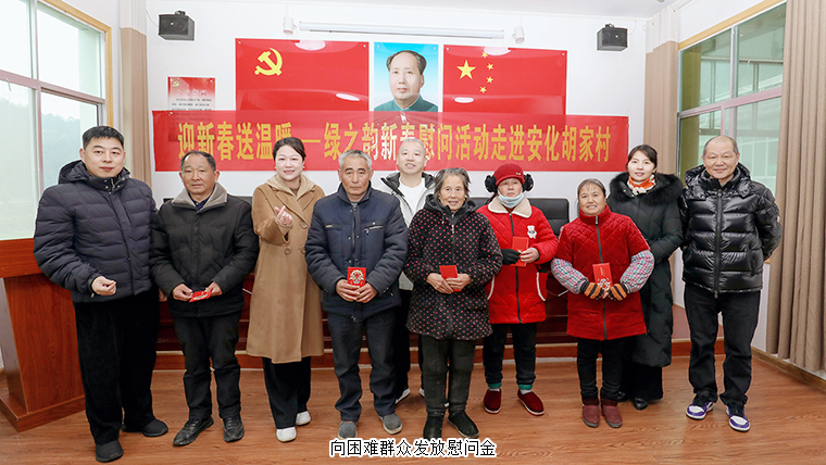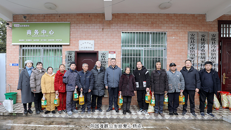 近日,綠之韻集團(tuán)積極響應(yīng)黨和政府的號(hào)召,通過湖南省慈善總會(huì)捐資100萬助力全省范圍內(nèi)新春慰問活動(dòng)的開展。2024年2月2日,冒著深冬嚴(yán)寒、冰霜凍雨,湖南省慈善總會(huì)副會(huì)長(zhǎng)、長(zhǎng)沙市人大代表、綠之韻集團(tuán)董事長(zhǎng)胡國安,湖南省政協(xié)委員、綠之韻集團(tuán)總裁、綠之韻公益基金會(huì)理事長(zhǎng)勞嘉,安化縣人大代表、綠之韻集團(tuán)常務(wù)副總裁胡均安,綠之韻集團(tuán)市場(chǎng)營(yíng)銷中心總經(jīng)理戴三省,安化縣政協(xié)委員、綠之韻集團(tuán)副總經(jīng)理胡武安,瀏陽市政協(xié)委員、綠之韻公益基金會(huì)秘書長(zhǎng)蔣文,綠之韻集團(tuán)市場(chǎng)營(yíng)銷中心業(yè)務(wù)總經(jīng)理趙蕾等集團(tuán)高管帶領(lǐng)市場(chǎng)領(lǐng)導(dǎo)一行從長(zhǎng)沙出發(fā),驅(qū)車200余公里回到家鄉(xiāng)安化開展新春慰問公益活動(dòng),為當(dāng)?shù)氐睦щy家庭送去新春的祝福和關(guān)愛。安化縣政協(xié)副主席、縣工商聯(lián)主席劉暢術(shù),安化縣統(tǒng)計(jì)局黨組書記寧偉,中共冷市鎮(zhèn)黨委書記胡寶成,冷市鎮(zhèn)鎮(zhèn)長(zhǎng)夏剛花,胡家村村支書胡利民帶領(lǐng)村支兩委、村民代表參加活動(dòng)。